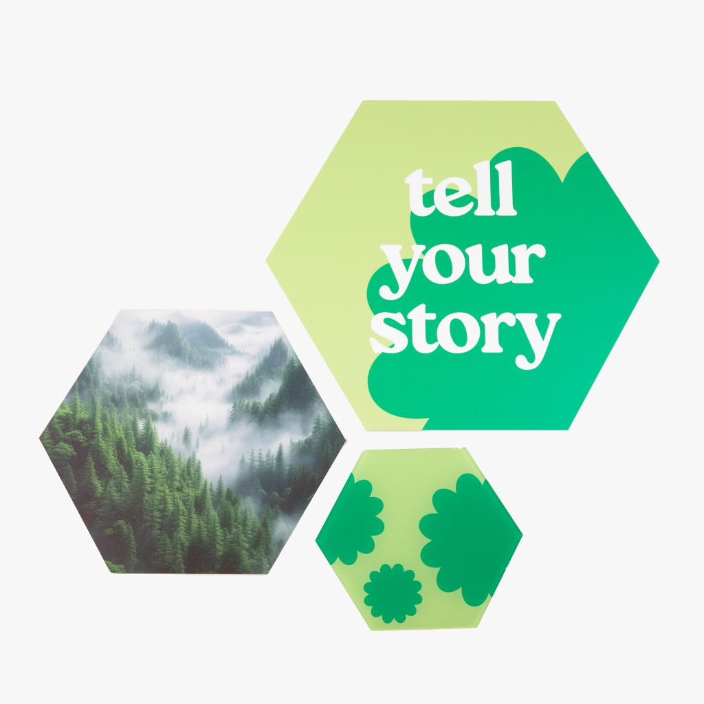 Creëer een originele en gepersonaliseerde uitstraling met hexagon panelen in diverse materialen. Perfect voor het maken van een collage met je eigen prints, foto’s of patronen. Verkrijgbaar in zes formaten, ideaal voor iedere ruimte!